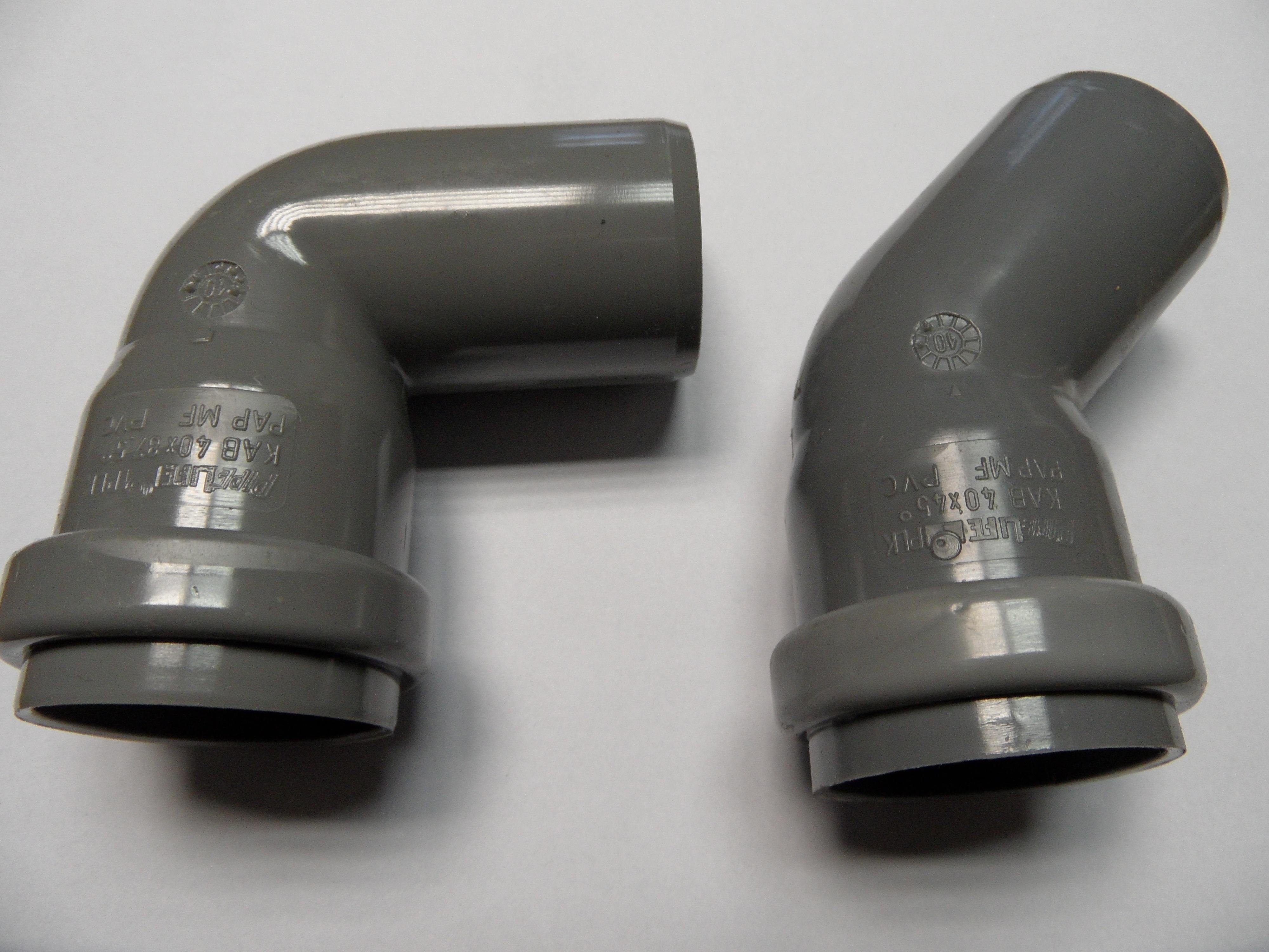 PVC alapanyagú 90° és 45° ív idom.